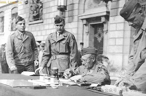 洛基中将代表中国战区最高统帅蒋介石在投降书上签字
