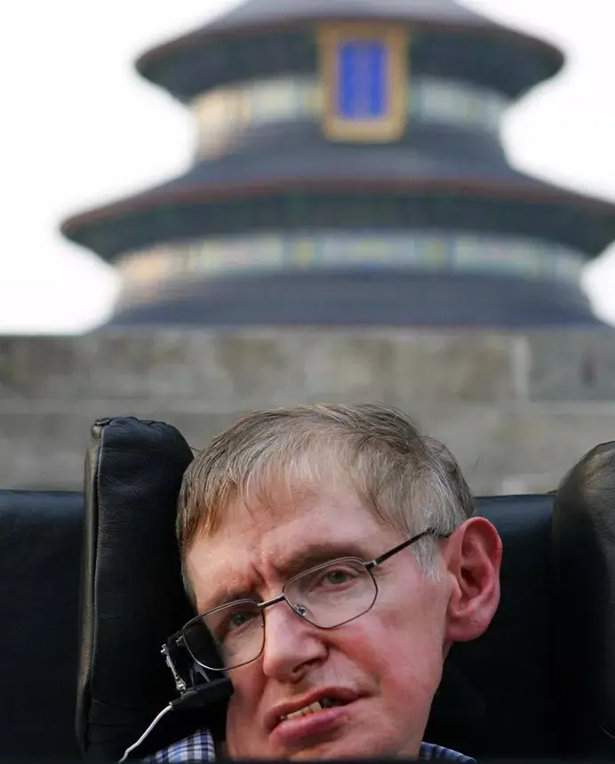 霍金在北京天坛, 2006年6月18日 图片来源:腾讯新闻