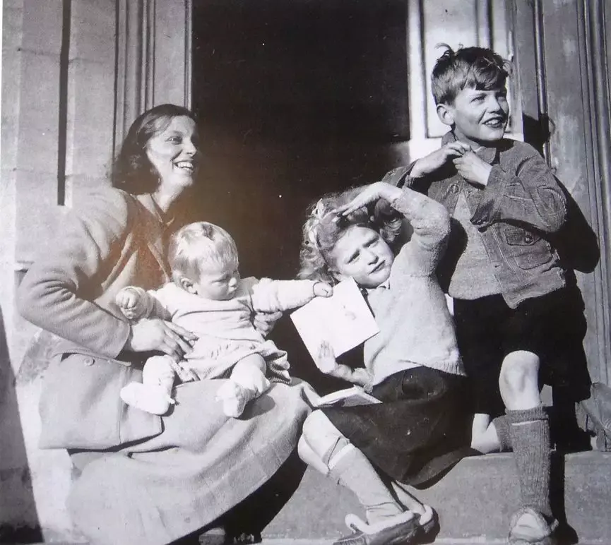 多萝西闻讯入选皇家学会后与三个孩子合影,1947年 图片来源:Ferry 1998