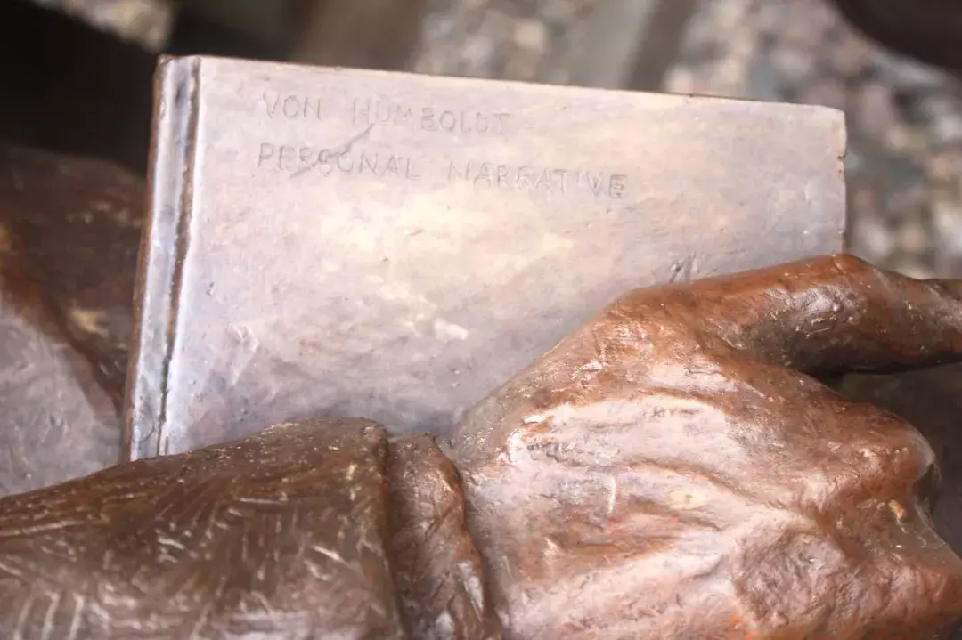 剑桥基督学院达尔文雕像手中的洪堡《美洲旅行记》 刘钝摄