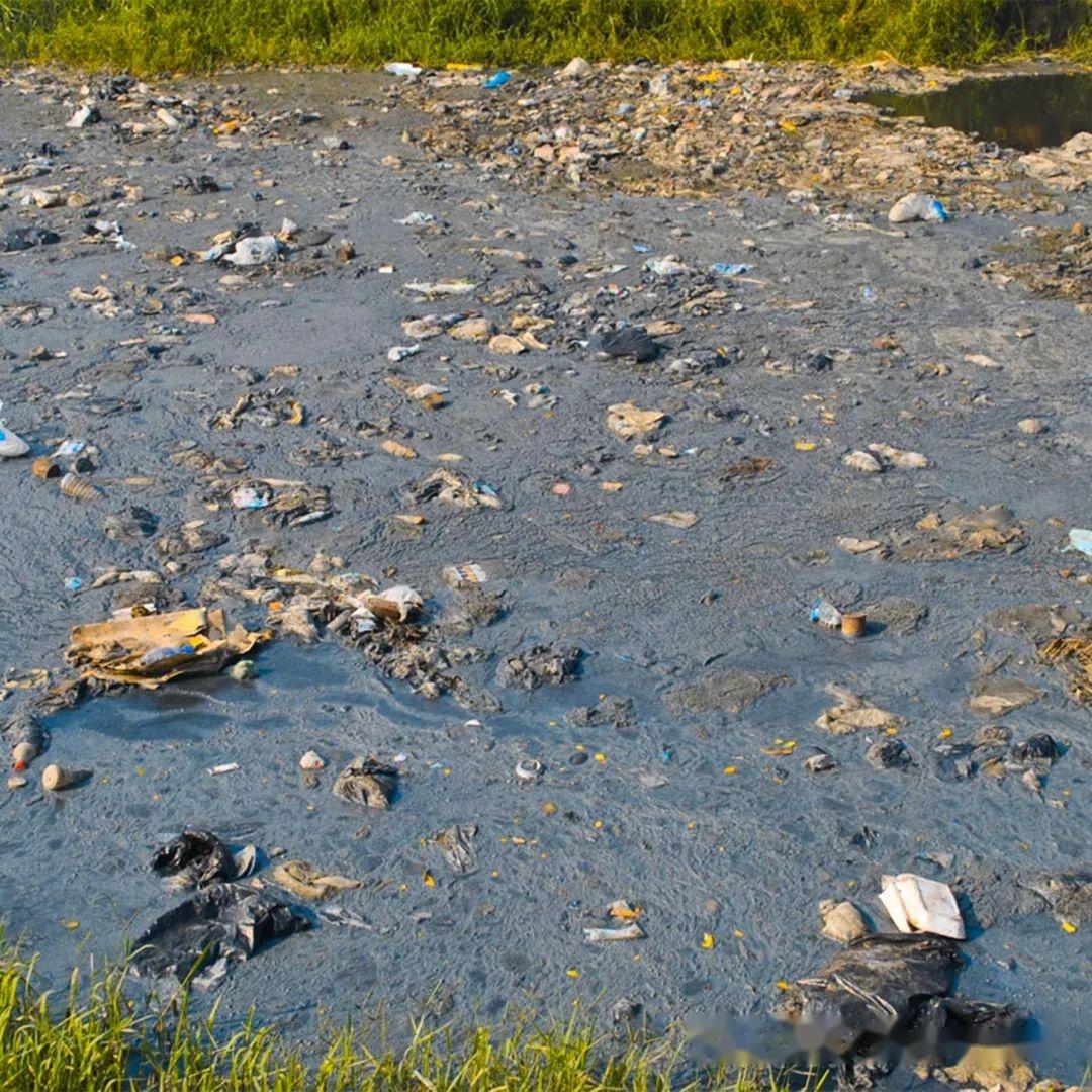 泛着焦油和各式塑料垃圾的科尔勒布河