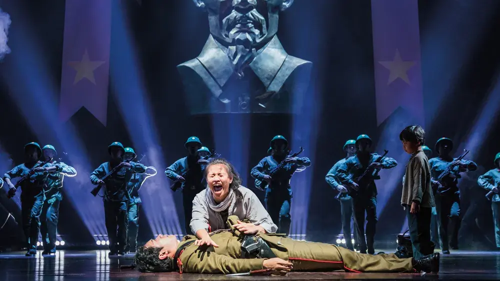 当剧中美国士兵克里斯与越南妓女金的爱情成为主线,越南人民抗击美帝国主义的正义斗争,被弱化为阻碍“真爱”的“背景噪音”——越南革命者要么被刻画成冷酷无情的反派,要么被简化为面目模糊的群像,其为民族解放而战的崇高信仰,在舞台上沦为服务爱情悲剧的工具。