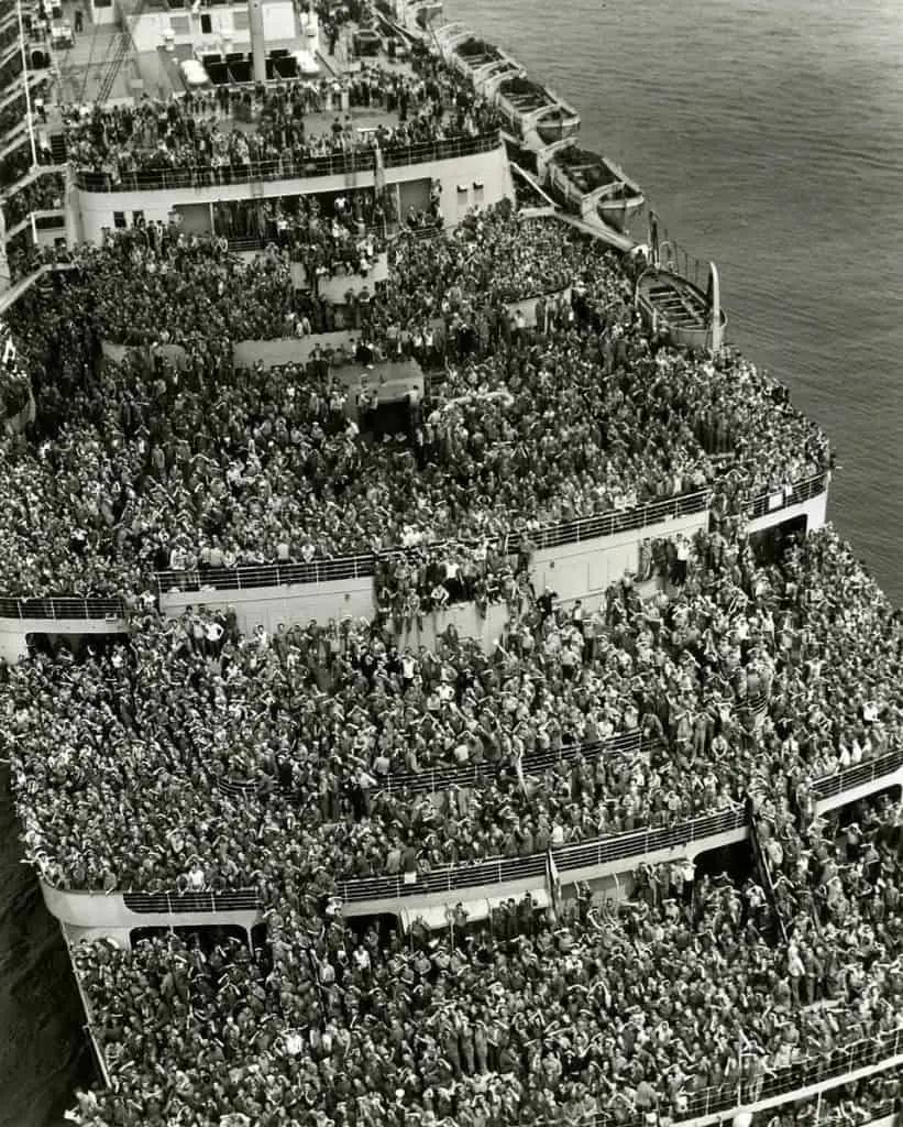 部分从欧洲归国的美军部队搭乘了由英国借调的远洋邮轮”玛丽皇后号”与”伊丽莎白皇后号”完成跨洋之旅。