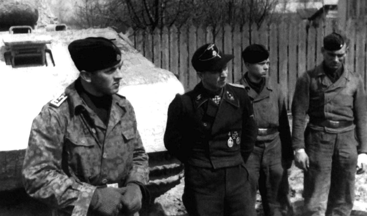 摄于4月9日,获得骑士十字勋章后,尼科卢西-莱克车组在800号“豹”式前合影。值得玩味的是,在该系列的几张照片中,尼科卢西-莱克车组看起来兴致并不高。