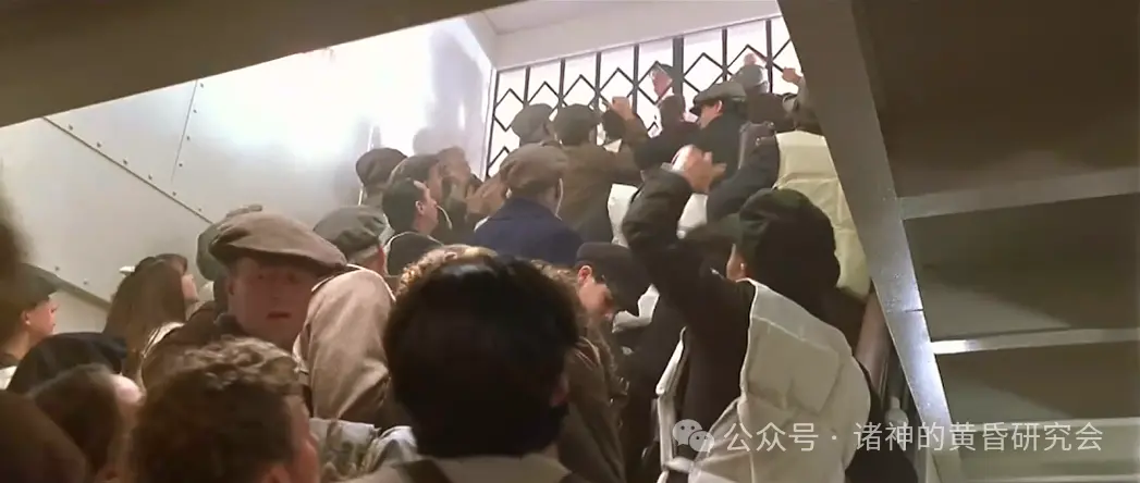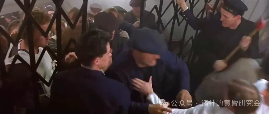 情节:三等舱乘客突破铁门,和服务员们发生肢体冲突。