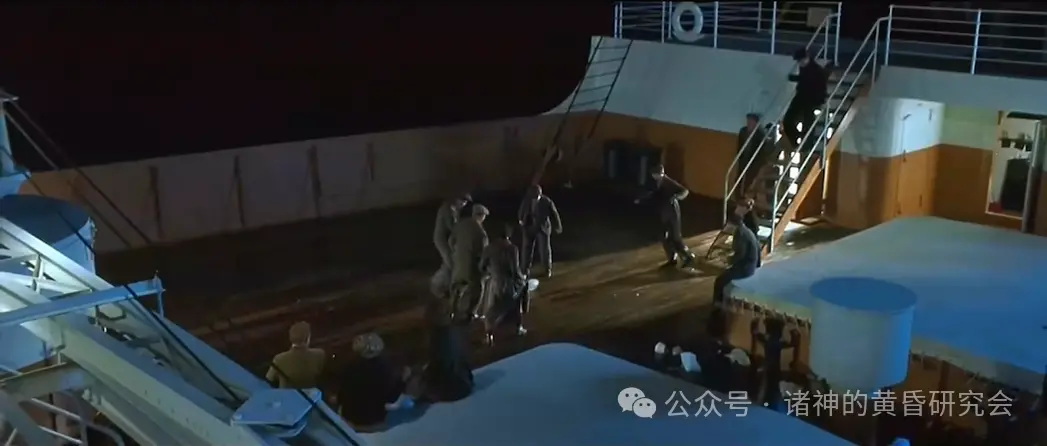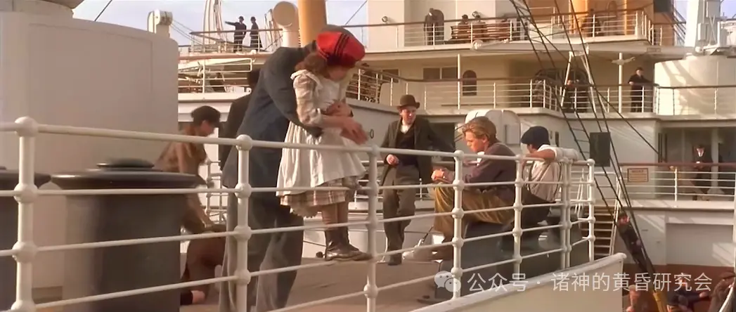 史实:艉艛甲板是三等舱乘客主要的室外公共空间之一,贫穷乘客在船上要享受到最佳视野只能来这里。