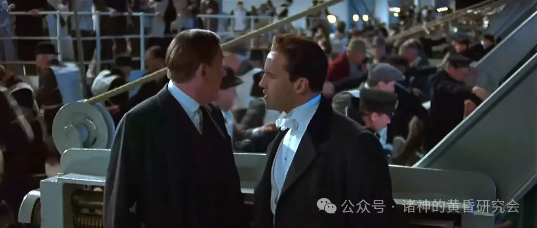 史实:绝大多数乘客和船员都相信,”泰坦尼克”号是“不沉之船”,撞到冰山只需要维修,有些人还相信船只是掉漆而已,所以他们一开始很抗拒逃生指示,加上烟囱噪音和寒冷,更愿意待在室内。