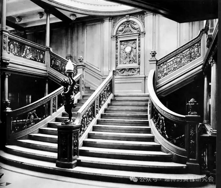 “泰坦尼克”号的姊妹船“奥林匹克”号的头等舱主楼梯,与“泰坦尼克”号的看起来几乎一模一样。目前尚无“泰坦尼克”号楼梯的照片。