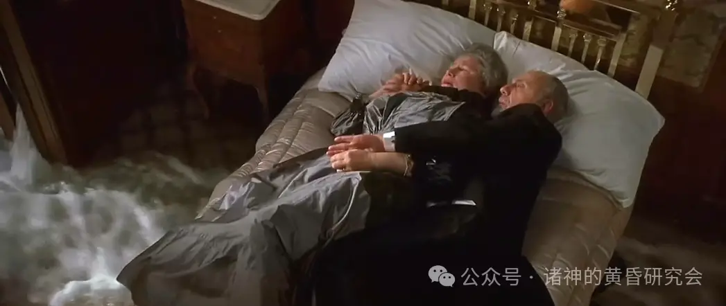 情节:一对老夫妻在床上相拥,海水涌进房间,两人坚定携手赴死。