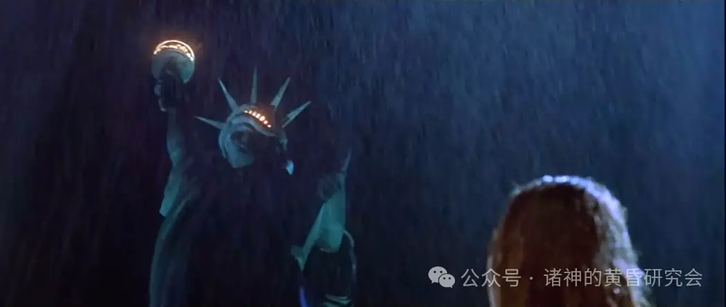 情节:萝丝在“喀尔巴阡”号上仰望黑夜里的自由女神像,下着滂沱大雨。