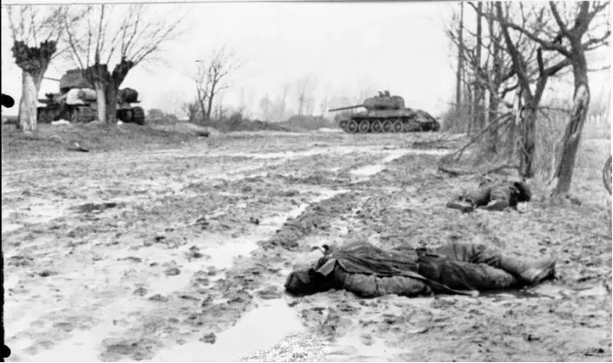1945年2月20日,位于波美拉尼亚南部战斗结束后的战场场景