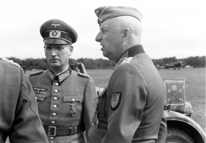 1943年9月,曼施坦因(右)与汉斯·施派达尔少将在第聂伯河畔