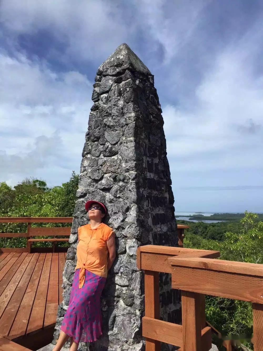 作者在贝里琉岛尼米兹石碑前