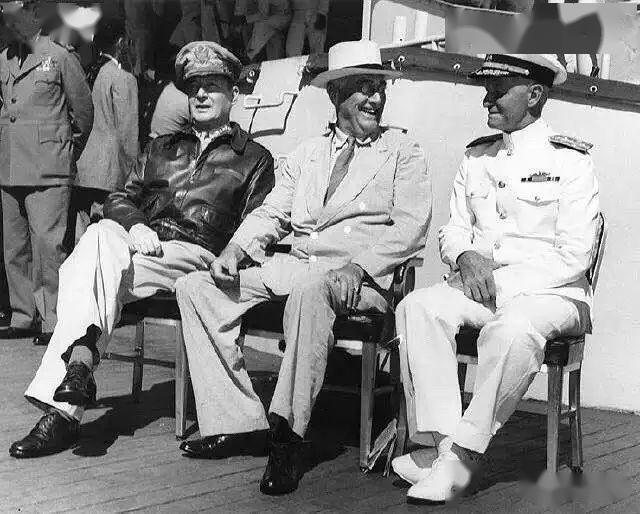 由左至右麦克阿瑟、罗斯福、尼米兹