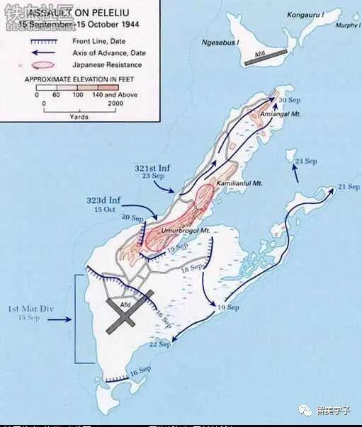 在1944年9月15日总进攻的前三天,美军动用了11艘航空母舰上面的400架舰载机和马利亚纳群岛上空的重型轰炸机,对整个帕劳群岛进行了狂轰滥炸,海面由美军的3艘战列舰和25艘巡洋舰,30艘驱逐舰对该群岛实施猛烈炮击。
