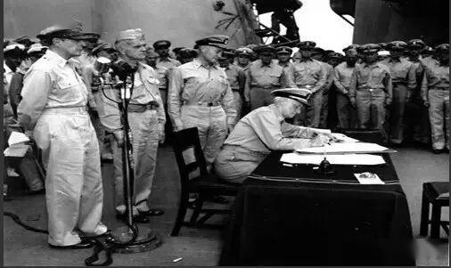 1945年9月2日,在美国太平洋舰队”密苏里”号战列舰上,举行了盟军接受日本无条件投降的签字仪式。尼米兹代表美国,麦克·阿瑟代表盟军签字。为表彰尼米兹上将的卓著功绩,华盛顿决定1945年的10月5日为”尼米兹日”。