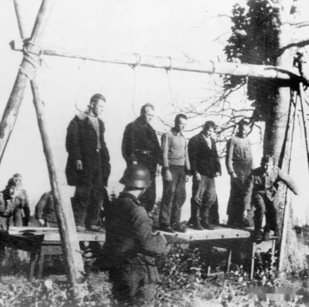 被绞死的苏联平民(可能是游击队)(1941年9月,斯摩棱斯克州-韦利日)(图片:Everett Historical / Shutterstock)▼