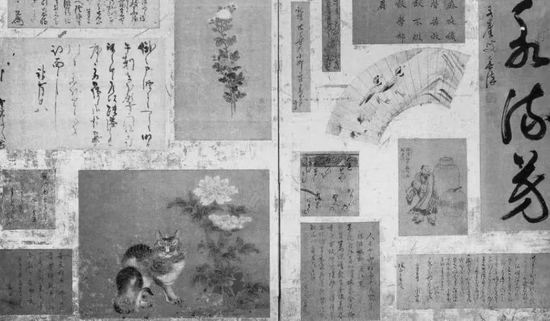 坂本和中冈被暗杀时房间内的挂轴,左下牡丹图上有点点血迹。图源:《坂本龙马与明治维新》