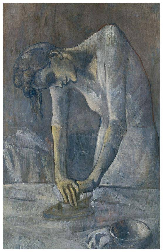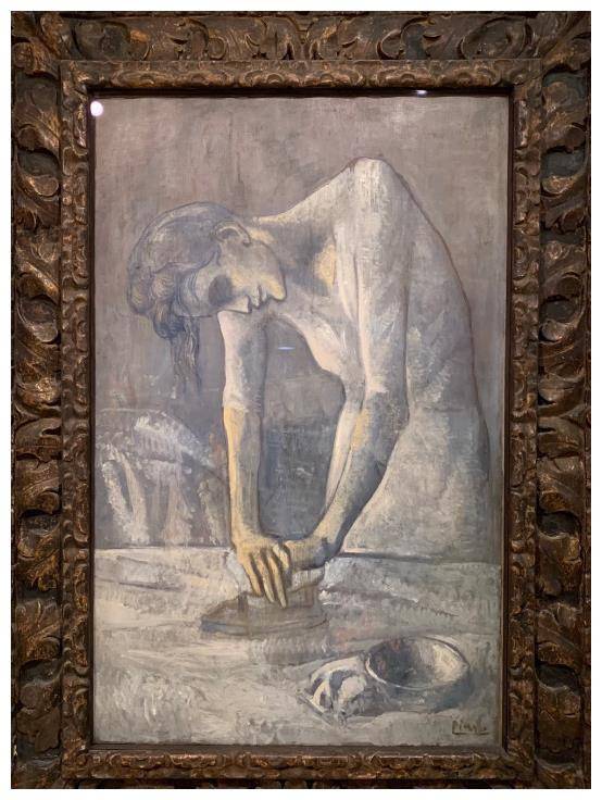 这是一幅西班牙著名画家毕加索的油画,名叫《熨烫衣服的女人》,作品创作于1904年,也就是毕加索艺术创作历程中的“蓝色时期”,那时他第一次形成了自己的风格。