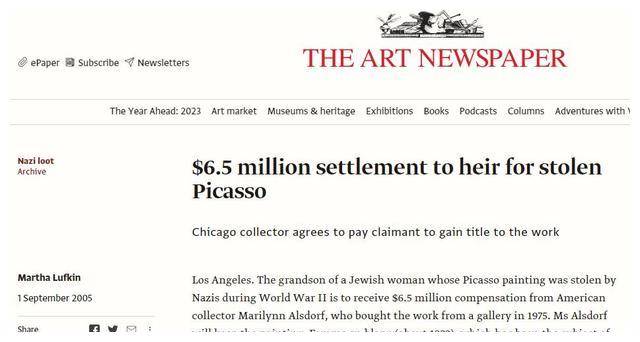 当年犹太人逃纳粹迫害低价卖出毕加索真迹。如今,他的后代想把画要回来…