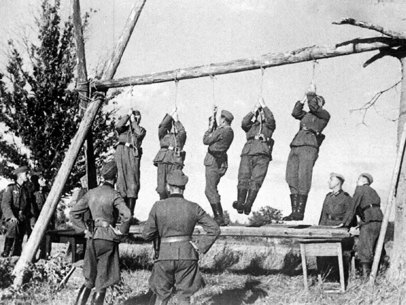那些国防兵不是没想过后退,但每一道防线的后面都有纳粹党徒的盯梢和监视,士兵们只要有撤退的想法,就会遭到难以忍受的酷刑惩罚,情节严重者还会被当场枪杀或绞死。数以万计的军人就这样死在了纳粹党徒的险恶用心之下。