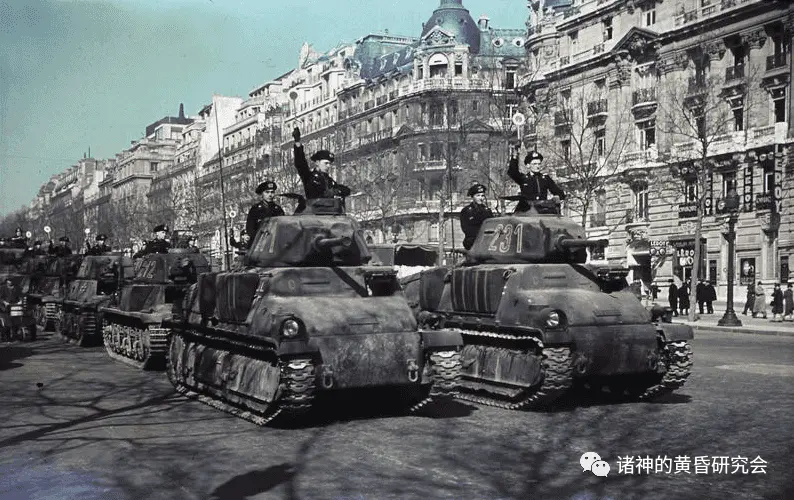1940年德国军队在巴黎香榭丽舍大街上阅兵——开着法国的坦克