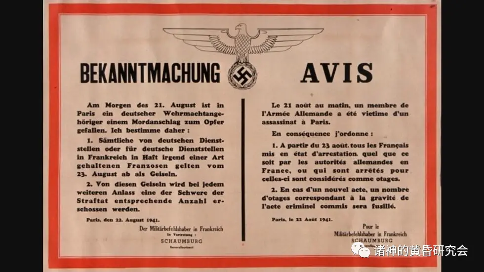 德国占领军针对暗杀霍茨中校事件发布的告示