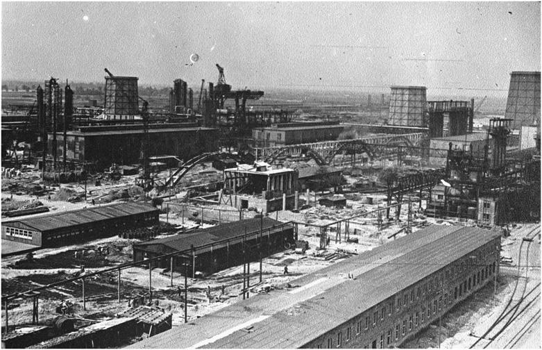 至于德固赛规划的中央工厂,纳粹政权虽允许企业动用累积资本推进项目,却以“非战争关键设施”为由拒绝提供其他支持。从1939年11月批准立项至1941年底,项目几无进展;1942年重启时被迫修改方案,增加军用甲醛产量。尽管该设施于1943年末投产,但直至1945年3月苏军抵达时,工厂其余部分仍未完工[23]。