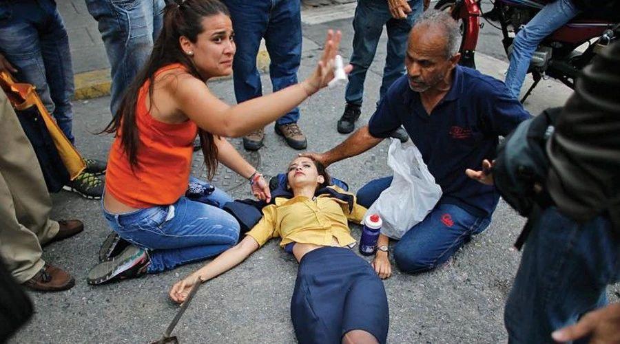 ▾抗议活动中,一名女性因吸入催泪瓦斯而昏迷
