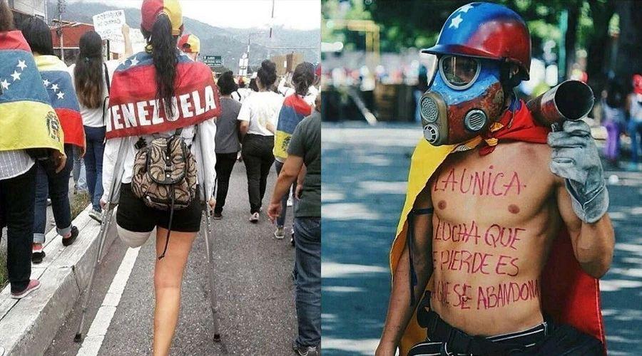 ▾左:大妈高举“查韦斯,你被解雇了!” 、右:4月11日,第一名被枪击身亡的男性示威者