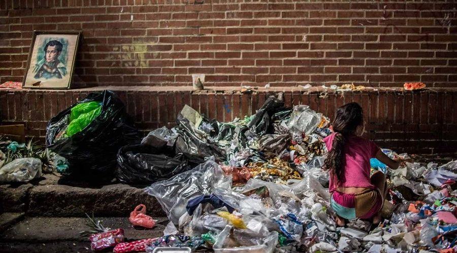 ▾一幕穿越时空的会面,玻利瓦尔画像与捡食垃圾的小女孩同框。如果老玻看到200多年后,有人打着自己的旗号将祖国革命成了这个逼样,这位南美解放者是否会哭泣?