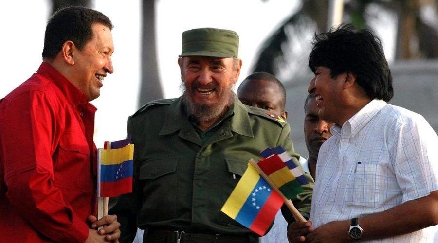 ▾2006年4月,“反美三斗士”齐聚古巴首都哈瓦那。委内瑞拉的查韦斯、古巴的卡斯特罗、玻利维亚的莫拉莱斯。这里除了莫拉莱斯一直把国家带入正常发展轨道外,剩下那哥俩就不提了… …
