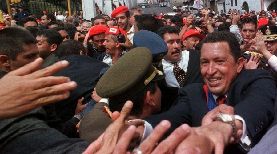 ▾1999年2月2日,查韦斯当选总统后迎接支持者。“同志们太热情了,但你们可别借机把老子手表给撸走!”