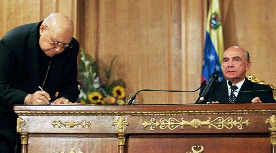 ▾加拉加斯大主教安东尼奥·加西亚,代表天主教会签字支持卡尔莫纳