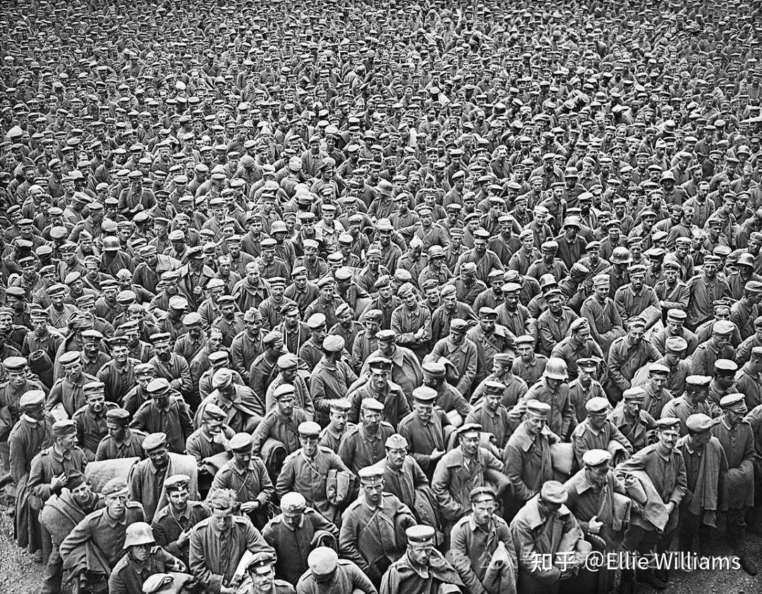 上图:1918年8月份的亚眠战役期间被英军抓获的大量德军俘虏。