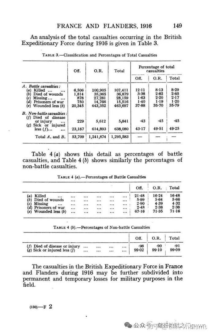 2、英军损失41.9万多人的损失数据也是错误的,这个数据指的是重复计算了被俘人数以后的英国本土部队在1916年7月到11月期间在整个西线战场的战斗损失,而不是英联邦军队在索姆河战役期间的战斗损失,英联邦军队在索姆河战役期间的实际战损大概在40万左右(差不多也相当于整个16年下半年英军总战损人数的78%),相当于对面德军损失的2.1倍(在这里必须再次给黑格正名一下了,由于索姆河战役首日负责主攻的英军第4集团军司令罗林森的拙劣指挥直接导致当天英军被德军打出了一个7.2比1的逆天交换比,黑大帅在战役结束时能把总交换比拉回到2.1的水平已经很了不起了)。另外,按照CWGC(英联邦战争墓地委员会)的提供的数据,从1916年7月1日到11月20日期间英军在索姆河地区的死亡人数为127751人,此数据不包括战役结束后死于医院和疗养院的那些重伤员,全算上的话,总数会达到13.1万人,不过,本人在仔细研究了1916年7月到11月期间西线英军的月度伤亡报告以后,发现这个数据实际上是包括了7.1-11.20期间西线英军在索姆河以外的其他战区的死亡人数(包括非战斗死亡),如果不算其他战区的死亡人数和非战斗死亡的话,英军在索姆河战役中的战死人数在11万人左右是一个比较合理的估值,除此以外,英军还有1万多人被俘(整个1916年英军在西线总共有15516人被俘,保守估计其中至少2/3以上是出现在索姆河战役期间)。