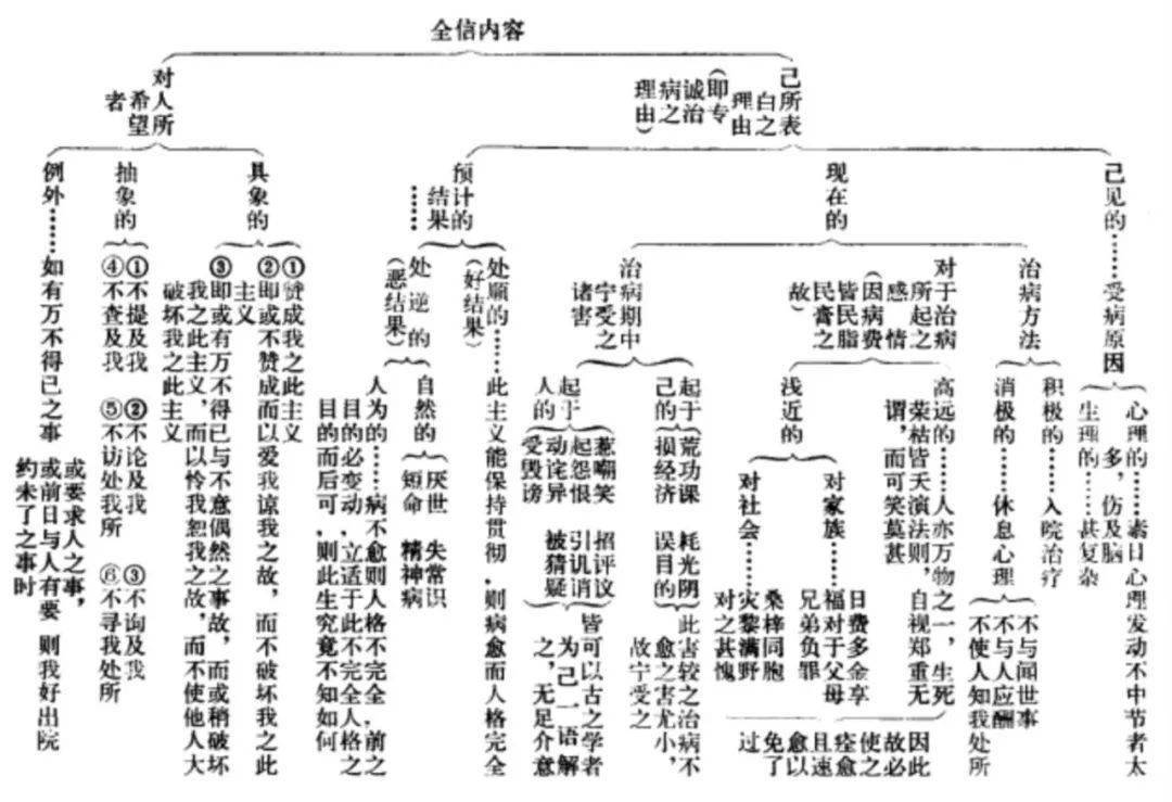 表中除了“主义”“心理”等经典的学科术语外,还出现了若干对哲学概念,如“具象的”/“抽象的”、“积极的”/“消极的”、“自然的”/“人为的”等,体现出20世纪初心理学与哲学交叉的特质。“对于治病所起之感情”与“预计的结果”两项,又传达出他对“病不愈则人格不完全”的强烈不安。个体与疾病的关系,转换为民族革命的成败,消极的“病体”与孱弱的“国体”互为表里,成为神经衰弱的主要病因之一。宋教仁曾反复记述在体验到这层焦虑时心情的跌宕:“心中悲感又起,以为若我终身患此病,则我将来必为无用之人;若因此病而殀,则更不能尽力于祖国,平生所立之志皆成梦想。”19