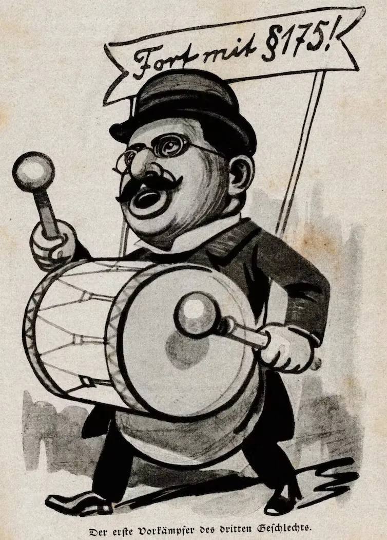 当时的一幅漫画,表现赫希菲尔德为反对175条鼓与呼