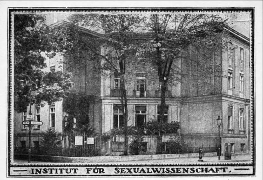 1919年,赫希菲尔德建立了“性科学研究所“,它兼具博物馆、诊所和研究中心的功能,坐落在柏林蒂尔加滕区一座漂亮的别墅里,赫希菲尔德和他的长期伴侣卡尔·吉斯以及他的姐姐住在二楼。研究所的入口处有一行拉丁语铭文,意思是:奉献给爱与悲伤。