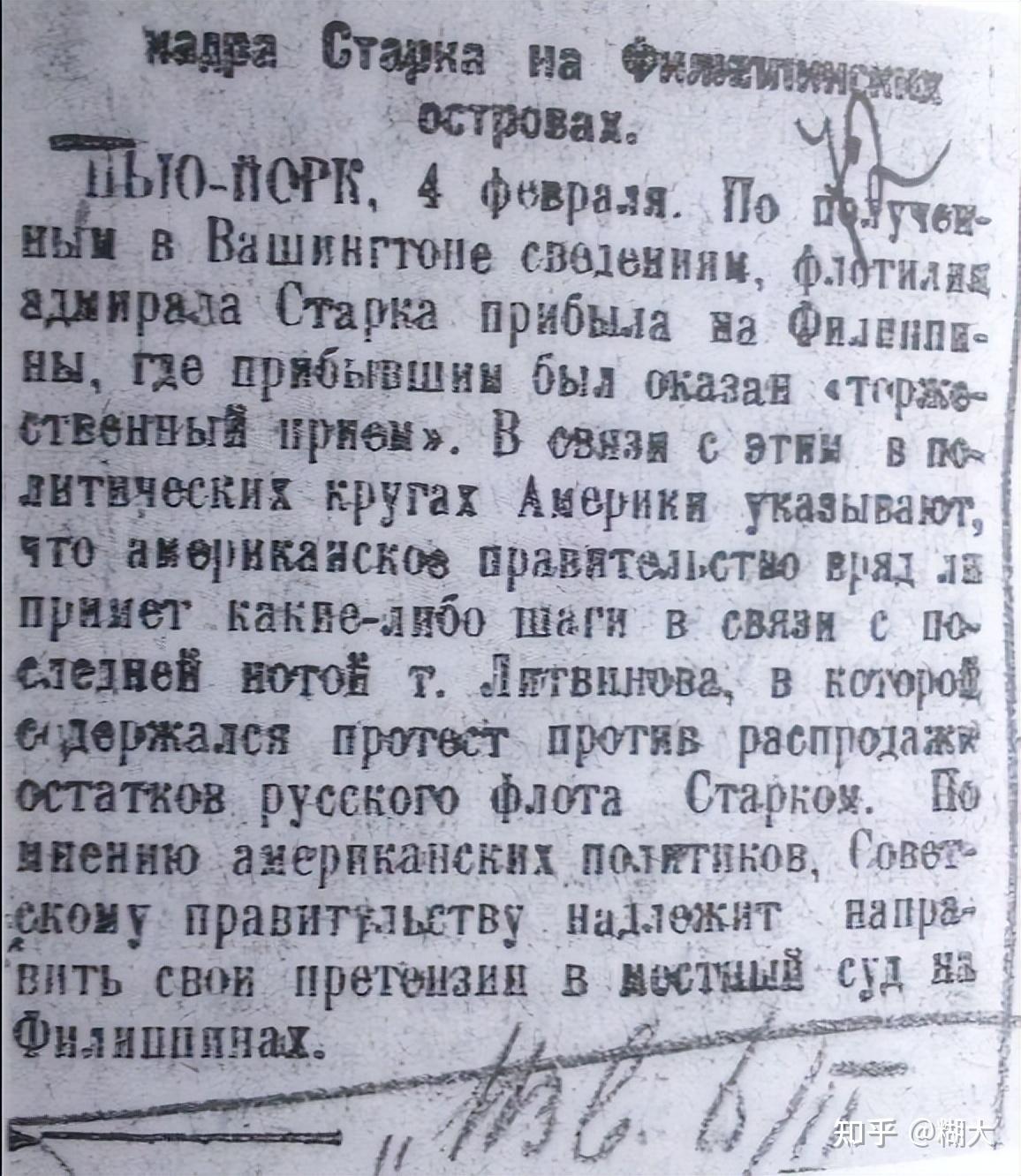 1923年2月6日,《消息报》刊登关于斯塔克舰队抵达菲律宾的新闻