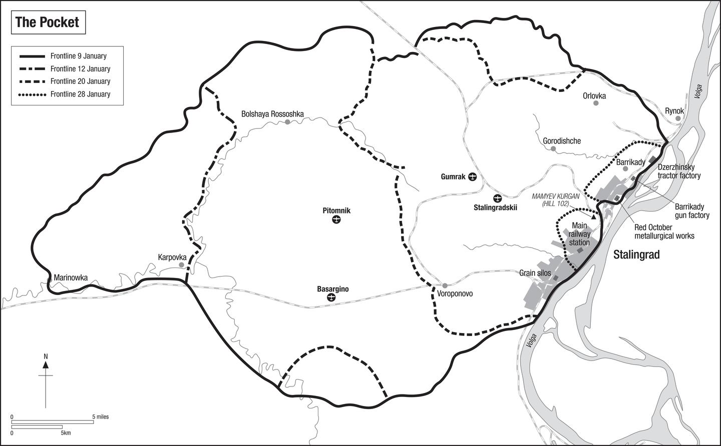 1942年11月22日,当斯大林格勒包围圈被苏军彻底封闭时,约有30万名德国及其盟国士兵被困其中,其中约10至14.5万人在战斗中阵亡、冻死、饿死,或因疾病与流行疾病而丧生[1]。在退守至斯大林格勒城中的德军向苏军投降之前,约有2.9万至4.5万名伤病员和仍具有战斗力的士兵,在极端恶劣的条件下被空运撤出包围圈。尽管具体的数据已无法得到确切的统计,但这些人至少避免了即将到来的战俘命运。最终,约有9万余名德军士兵在1943年2月2日前后向苏军投降并被俘虏,这些幸存者中的绝大多数人都已身负重伤,或是饱受疾病、冻伤以及严重的营养不良的折磨而濒临死亡。