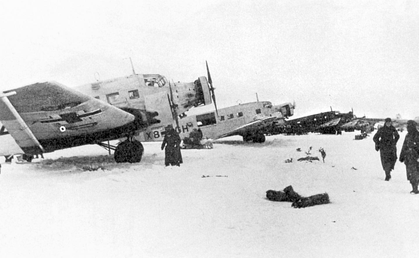 这些运输机大多严重超载,需在苏军的炮火下起降,即便是在能见度良好的情况下,它们也时常遭受苏联战斗机的持续追击。据统计,至少有495架用于包围圈空运的运输机损失,仅从数字上来推算的话,这意味着可能总计有数千名飞行员与伤病员在空运撤离途中丧生。
