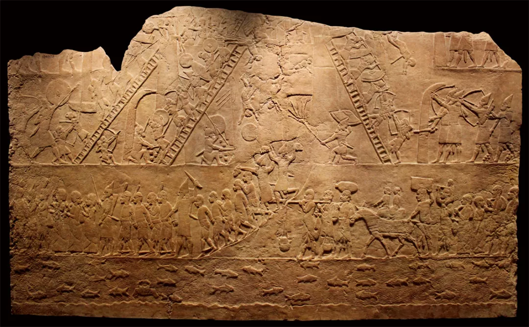 △浮雕壁画描绘了亚述帝国军队的攻城与凯旋的场景。