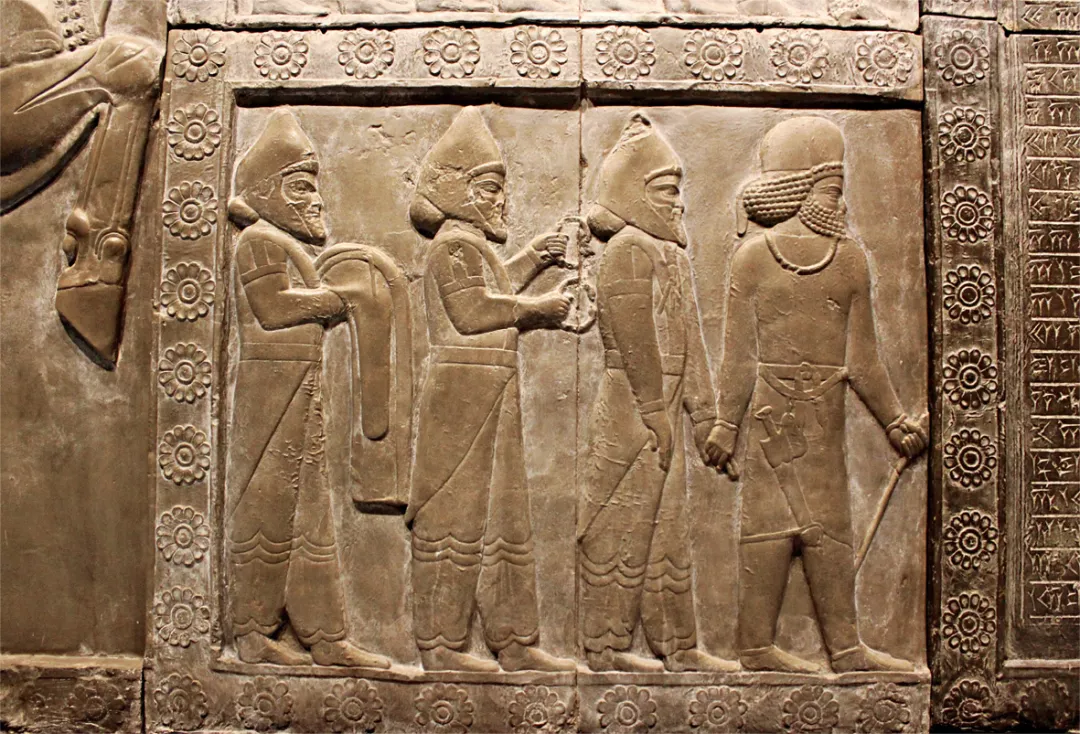 △刻有亚述帝国官僚形象的浮雕。