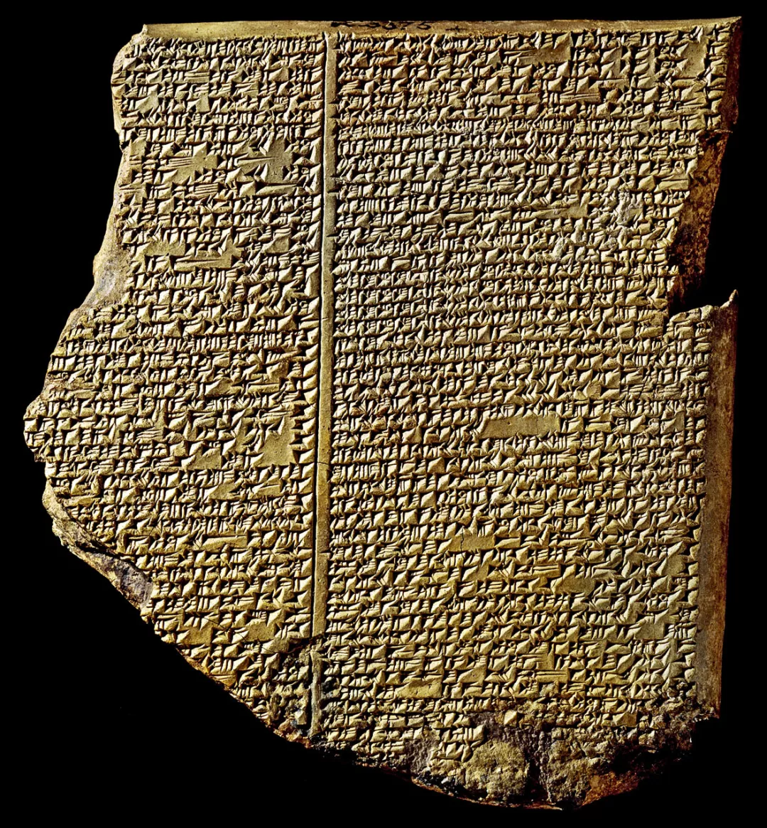 △书写有楔形文字的泥板片段,讲述了吉尔伽美什史诗中洪水的故事。