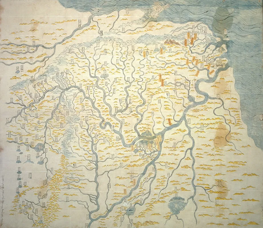 以地图作礼,并非法国人首创。十七世纪初,利玛窦在面见明朝的万历皇帝时,也进献过一幅《坤舆万国全图》。为讨欢心,利氏还稍作改动,将180°经线放于此图中部,中华帝国由此也就处于世界的中央。相较于前辈这件赫赫有名的献礼,一六九〇年张诚的地图后人鲜有问津,对当时地理空间的绘制也算不上完整。但当康熙手持此图,御览疆土时,国土空间的已知与未知跃然纸上。其时正值内忧外患,常听耶稣会士讲学、青睐西洋科技的皇帝对法国人的制图技法刮目相看。适逢京城附近的白河决堤,需要舆图配合治理,一七○五年,他决定让法国耶稣会士来测绘一幅地图,这正中张诚等人的下怀。