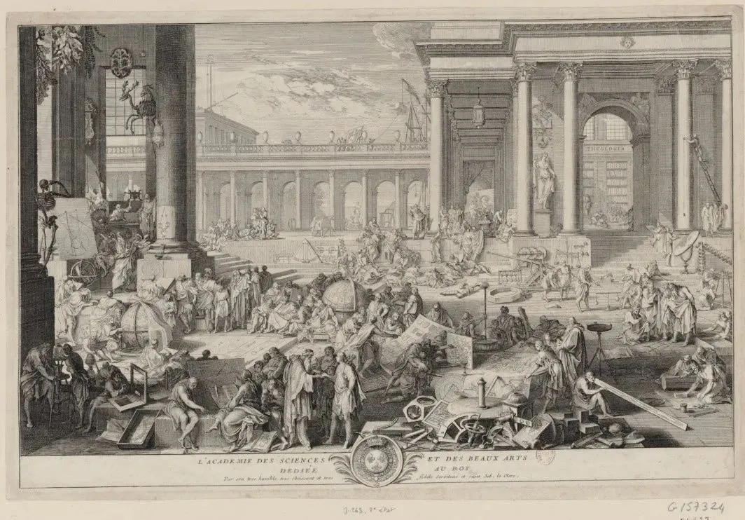 1698年Sébastien Leclerc的版画《皇家科学与美术学院》 巴黎法国国家图书馆藏