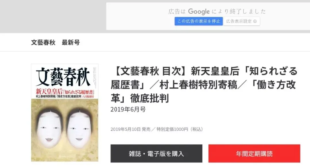 《文艺春秋》2019年6月号封面