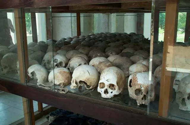 吐斯廉屠杀博物馆(Tuol Sleng Genocide Museum,前S-21集中营)的红色高棉受害者头骨
