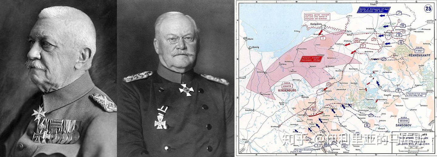 从左到右:德第2集团军司令比洛,德第8集团军司令普里特维茨以及俄军入侵东普鲁士